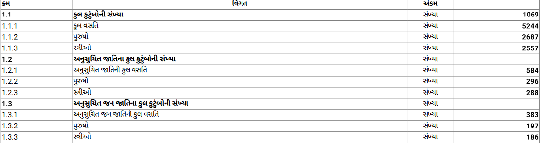 વસ્તી-વિષયક માહતી(૨૦૧૧ની વસ્તી ગણતરી મુજબ)